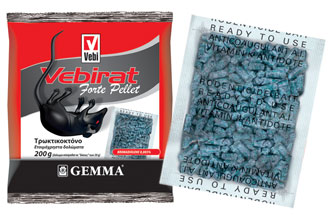 Το mini pellet της σειράς Vebirat βρίσκεται προ-συσκευασμένο σε σακουλάκια των 10 g ώστε να μην χρειάζεται να χρησιμοποιήσετε γάντι για την δόλωση του. Δολώνεται μαζί με το σακουλάκι το οποίο καταναλώνεται από τον ποντικό χωρίς να χρειάζεται να το σκίσουμε. Αντίδοτο της δραστικής ουσίας bromadiolone είναι η χορήγηση βιταμίνης K. |